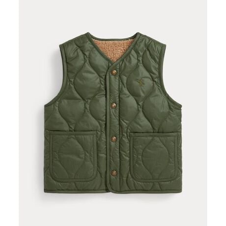 水をはじきやすいリップストップで仕立てた、650フィルパワーダウンのベスト。肌触りの良いテディフリースの面とのリバーシブル仕様・650フィルパワー / フィルパワーはダウンのかさ高を測定(フィルパワー範囲は450〜1,000)・両面の左胸にシグネチャーのポニー刺繍・Vネック / スナップ付き前立て / 特別に開発したPolo Ralph Laurenのロゴ入りスナップ・キルティング面のフロントウエストにパッチポケット2つ / テディフリースの面のフロントウエストに箱ポケット2つ・全体に中綿入り※商品の色味は、光のあたり具合など諸条件により色感が多少異なって見える場合がございますので予めご了承下さい。 【素材】・本体:ナイロン 100% 裏側:ポリエステル 70%、アクリル 30% 詰め物:ダウン 75%、フェザー 25% 装飾部分を除く【生産国】インド