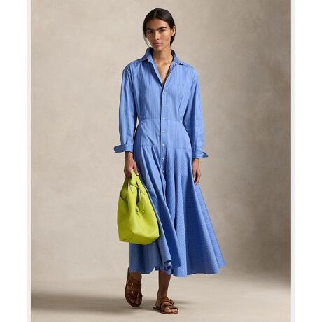 糸染めのストライプモチーフが特徴的なドレス。コットンのシャツ生地を使用してシルクのようになめらかな手触りを演出。スプレッドカラー、ボタン付きプラケット、Aラインのシルエットに仕立てたパネルスカートなど、クラシックなディテールを組み合わせたアイテム。・Aラインのシルエット / 足首よりやや上の着丈・スプレッドカラー / ボタン付き前立て / シェルボタン・長袖、ボタン付きバレルカフス / ドロップショルダー / サイドシームポケット・ウエストの前後にヨーク / ウエストの前後にダーツ / バックヨーク・モデル身長178cm、着用サイズ4※商品の色味は、光のあたり具合など諸条件により色感が多少異なって見える場合がございますので予めご了承下さい。※注意:柄の配置は、商品によって異なります。※ラルフ ローレンのシャツは、袖口がまくられた状態で納品され、そのままの状態で保管されている場合があります。デザインや商品特性を活かす為に、あえてこのような工夫をしておりますので、予めご了承ください。 【素材】・本体:綿 100%【生産国】ベトナム
