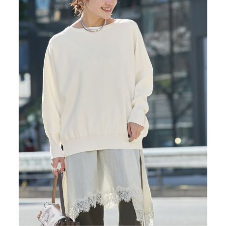 シンプルなデザインなので1枚で着るのはもちろん、白シャツやブラウスをインしたレイヤードスタイルもおすすめです。