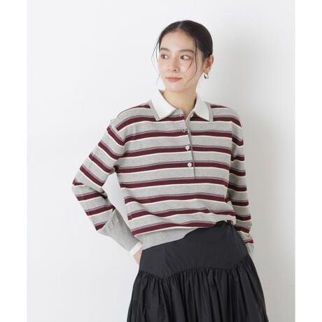 ハイゲージで編み立てた、表情豊かなボーダーポロニット。別布で仕立てた衿は前釦を開けても自然にレイヤードが見えるよう計算されており、抜け感のある着こなしが楽しめる1枚です。