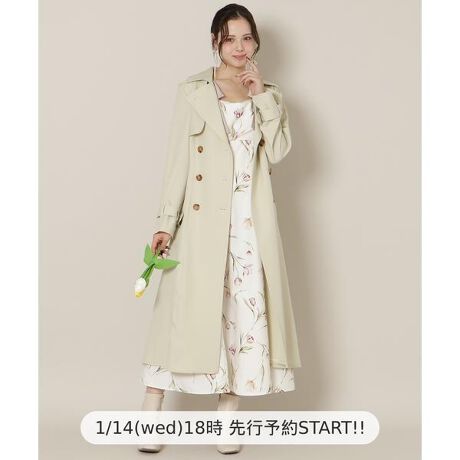 ベーシックなトレンチコートに今っぽデザインを取り入れた最旬アウターが登場♪【Design】・動くたびに美しく広がる、ワンピースのようなフレアシルエットのトレンチコート。・裏地にはオリジナルプリントを施しており、見えないところまでこだわりをプラス。・ボタンや袖口のベルトには上品なべっ甲柄パーツを使用し、上品な雰囲気を添えるアクセントに。・袖口ベルトでフレア感を調整でき、シルエットの変化も楽しめます。・柔らかい生地で、軽やかで着心地の良さも魅力。・きれいめコーデにも合わせやすく、デイリーからちょっとしたお出かけまで幅広く活躍する万能アウターです◎・同柄を使用した【リボンショルダーチューリップフレアワンピース(品番:20082615100025)】【チューリッププリントタックフレアスカート(品番:20082612100026)】もおすすめ♪【Fabic】・上質感のある、シワになりにくいポリエステル素材を使用。・エクリュ、ベージュ、ピンク、ミントの4色展開となります。【Care】ドライクリーニング
