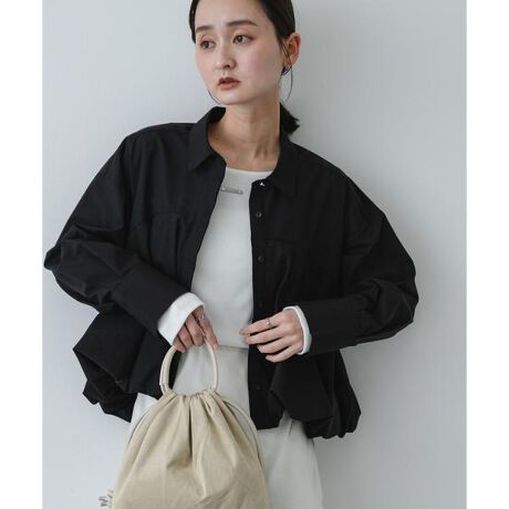 独創的なカッティングで仕上げた、主役級のデザインシャツ。計算された裾のボリュームによる愛らしいバルーンシルエットが、シンプルなボトムスとの合わせも特別感のある装いへと昇華させます。素材には防シワ性に優れたシャツ生地を採用しており、美しいフォルムを長時間維持できるのも魅力の一つ。顔周りを引き締めるシルバーの第一ボタンがアクセントとなり、アクセサリーを控えめにしても華やかな印象を与えてくれる、こだわりの詰まった一着です。