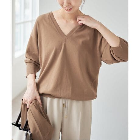 ややゆったりとしたサイジングに、深めのVネックが抜け感をプラス。
