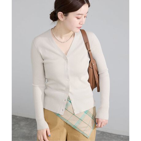 上品な光沢と、さらりとした肌触りが魅力のカーディガン。