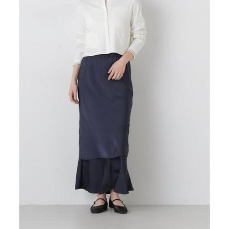 シンプルながらも新鮮なスタイルが叶う、レイヤードデザインのサテンスカート。裾部分のフレアを多めに取ったややナローなシルエットが、マーメイドラインのような女性らしさを演出してくれるアイテムです。