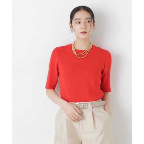 UVカットとマシンウォッシャブルの優れた機能性が嬉しい五分袖リブニット。リブ仕様で仕立てた身体のラインを拾いすぎない程よい細身のシルエットで、女性らしく着こなせる一枚。コンパクトなデザインと五分袖丈が春ニットとして大活躍してくれます。