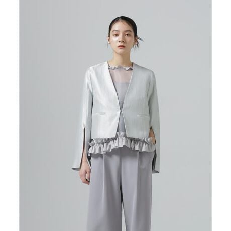 セレモニースタイルに向けた上品なショートジャケット。コンパクトな丈感でワンピースやドレス、セットアップとの相性も良く、幅広いオケージョンで活躍する一着です。