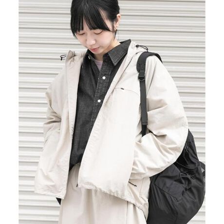 ドルマンスリーブ型のビックシルエットで今年は後丈を長くして風が入りにくくしました。撥水・UV機能があり、ドライタッチな質感で清涼感のあるナイロンタッサー素材を使用したジップパーカー。ブランドロゴ入りのスピンドルを使用し、ポケットの袋布もメッシュ素材でで水抜けしやすくアウトドア仕様なっております。切替のみのシンプルデザインですのでアクティビティシーンでの防寒や日除けだけでなく、デイリーユースでの抜け感を出したゴープコア風スタイルまでも演出出来ます。