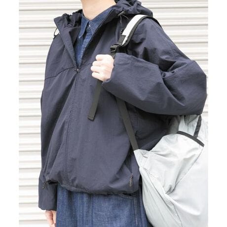 ドルマンスリーブ型のビックシルエットで今年は後丈を長くして風が入りにくくしました。撥水・UV機能があり、ドライタッチな質感で清涼感のあるナイロンタッサー素材を使用したジップパーカー。ブランドロゴ入りのスピンドルを使用し、ポケットの袋布もメッシュ素材でで水抜けしやすくアウトドア仕様なっております。切替のみのシンプルデザインですのでアクティビティシーンでの防寒や日除けだけでなく、デイリーユースでの抜け感を出したゴープコア風スタイルまでも演出出来ます。