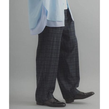 【存在感あるチェック柄。ウエストゴムで快適なイージーワイドトラウザー】