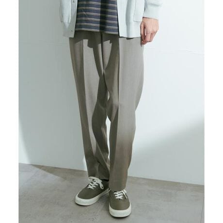 ・ノータックのすっきりとしたテーパードシルエット。ウエストの総ゴムは目立ちにくい仕様
