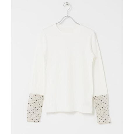 レイヤードで際立つ袖口フロッキードットトップス