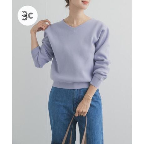 浅めのVネックデザインが顔まわりをすっきりと見せ、上品でシンプルな印象に仕上げます。