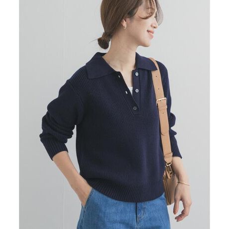 衿デザインが映える、畦編みポロニット