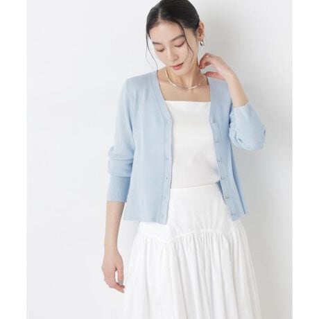 UVカットとマシンウォッシャブルの優れた機能性が嬉しいカーディガン。リブ仕様で仕立てた身体のラインを拾いすぎない程よい細身のシルエットで、女性らしく着こなせる一枚。コンパクトなデザインなので、これからのシーズン羽織りとして大活躍します。