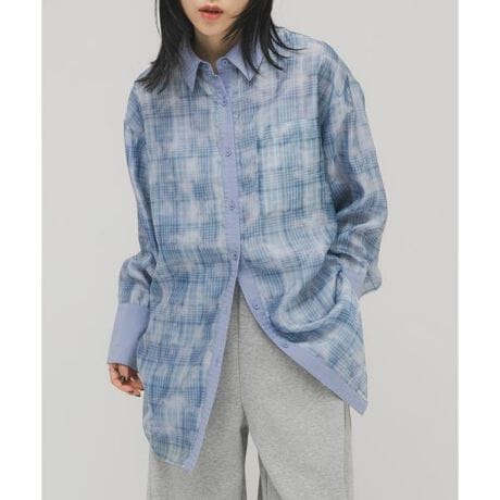 シアーストライプに、シアーチェック柄のプリントをレイヤードした主役級シャツが登場。オーバーサイズなデザインがKBFならではのシルエットになっており、他にはないオリジナルの爽やかなカラーもポイントです。ベーシックボトムに合わせるだけで簡単にこなれ感とおしゃれ見えが叶う1着です。