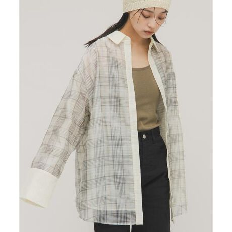 シアーストライプに、シアーチェック柄のプリントをレイヤードした主役級シャツが登場。オーバーサイズなデザインがKBFならではのシルエットになっており、他にはないオリジナルの爽やかなカラーもポイントです。ベーシックボトムに合わせるだけで簡単にこなれ感とおしゃれ見えが叶う1着です。