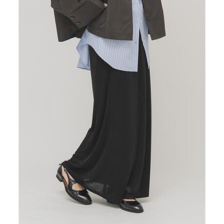 光沢感のある素材が特徴的な、伸縮性と穿き心地の良さが嬉しいイージースカート。ポケット付きやウエストはゴム仕様、落ち感のあるきれいなシルエットもポイントです。ロングスパンで様々な着こなしが楽しめます。