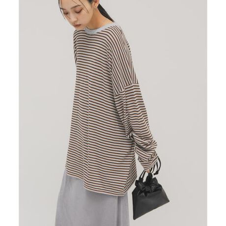 メンズライクなルーズなシルエットが魅力の、1枚持っておくと着回せるボーダートップス。着丈や袖丈を少し長めに設定することで抜け感のある着こなしが叶います。透け過ぎないシアーな素材や、オリジナルのマルチボーダー配色もこだわりのポイントです。どんなボトムにも合わせやすくジャケットのインナーにもぴったりです。