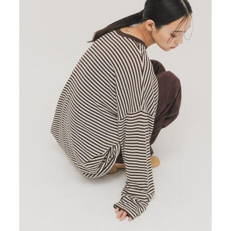 メンズライクなルーズなシルエットが魅力の、1枚持っておくと着回せるボーダートップス。着丈や袖丈を少し長めに設定することで抜け感のある着こなしが叶います。透け過ぎないシアーな素材や、オリジナルのマルチボーダー配色もこだわりのポイントです。どんなボトムにも合わせやすくジャケットのインナーにもぴったりです。