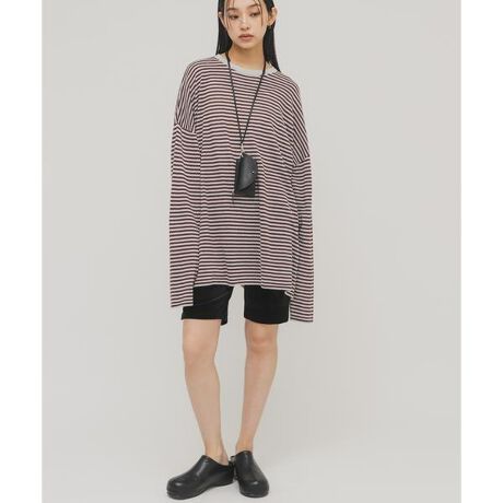 メンズライクなルーズなシルエットが魅力の、1枚持っておくと着回せるボーダートップス。着丈や袖丈を少し長めに設定することで抜け感のある着こなしが叶います。透け過ぎないシアーな素材や、オリジナルのマルチボーダー配色もこだわりのポイントです。どんなボトムにも合わせやすくジャケットのインナーにもぴったりです。