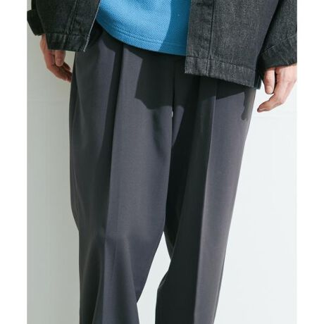 ・ウエストにツータックをいれたワイドテーパードシルエット。ウエストの総ゴムは目立ちにくい仕様