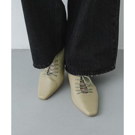 ・クラシカルな魅力を放つレースアップデザインが、装いに知的なアクセントをプラス