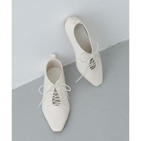 繊細な紐通しが美しい、レースアップ仕様のフラットシューズ。厳選された柔らかいフェイクレザーを使用することで、新品時から足当たりの良いソフトな質感を叶えました。内部にはクッション性の高いインソールを採用しており、歩行時の衝撃を和らげ、快適な履き心地が持続します。すっきりとした細身のシルエットは、パンツスタイルからスカートまで幅広く調和。いつものコーディネートに添えるだけで、洗練されたトラッドな雰囲気を演出してくれる一足です。