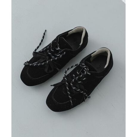 温かみのあるマットなスウェード調素材で仕上げた、大人カジュアルなフラットスニーカー。最大の特徴は、異なる色や素材を組み合わせたツインコードデザイン。2本の紐が重なり合うことで、足元にさりげない配色アクセントと立体感をプラスします。ボリュームを抑えたスリムなシルエットは、ワイドパンツからスカートまでバランス良く決まり、日常? 歩行を軽快にサポート。カジュアルすぎない素材感で、洗練されたデイリースタイルを叶える一足です。