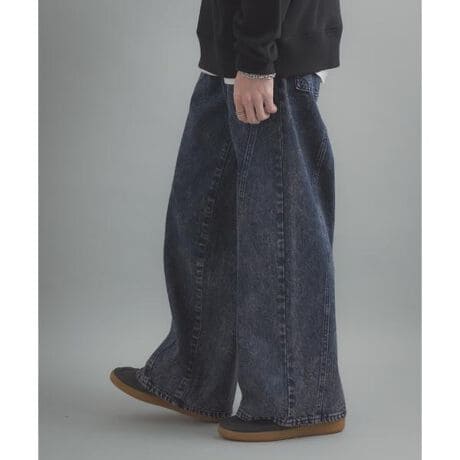 【ルーズなのに洗練。ハリ感素材で仕上げたパネルデザインワイドデニム】