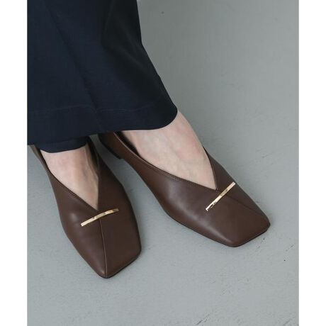 ・フロントに配されたゴールドのパーツが、アシンメトリーなスクエアトゥに上品なアクセントをプラス