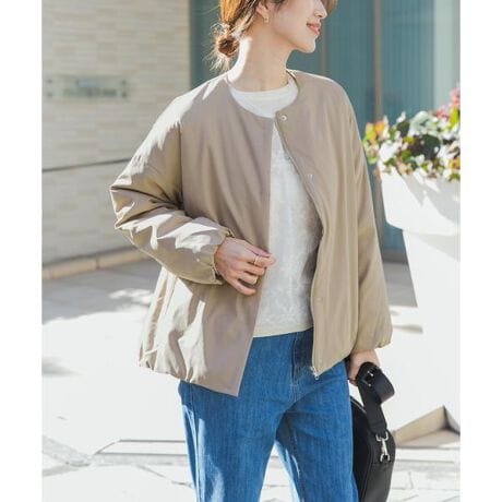 軽やかに着られる中綿ノーカラーコート