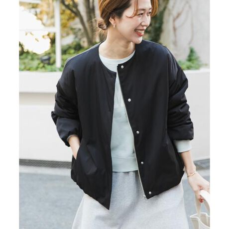 程よい肉感の撥水加工を施した中綿ノーカラーコート。