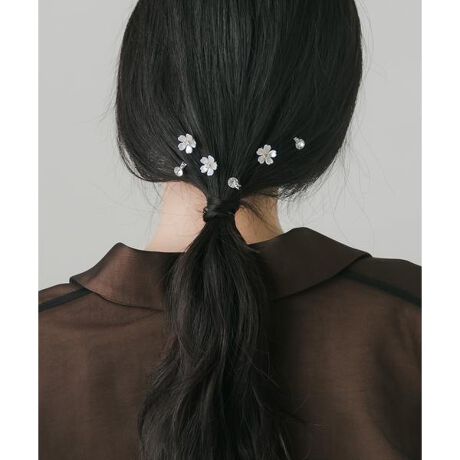 一つ一つは華奢なミニサイズなので、まとめ髪のアクセントとして数個使いしたり、ハーフアップのラインに沿って並べたりと、アレンジの幅は無限大。