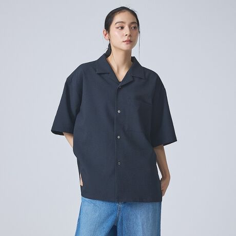 ベーシックな開襟シャツ型ながら、ボタンに高級貝釦を採用し、大人な一枚に仕上げました。