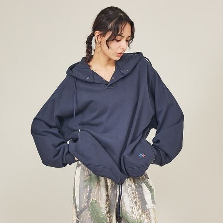 BerBerJinの感性とRUSSELLの定番スウェットが融合した、留め方で表情が変わるスナップボタン仕様の特別モデル。