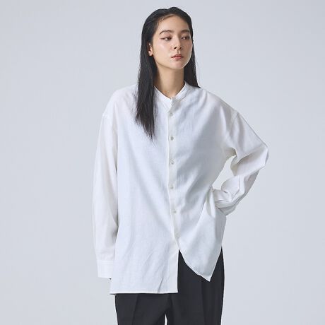 バンドカラーを採用し、ゆったり身幅サイズにすることで夏でも涼しく、冷房対策にも活躍!春や秋もさらっと織れる着回しできる1着です。