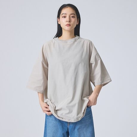 極細番手のECOTEC糸をスーパーハイゲージに編む事で布帛のようなハリ感を再現したTシャツです。
