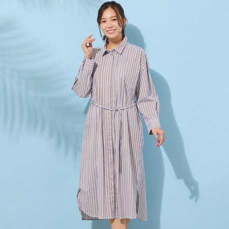 ■爽やかなストライプ柄が着映えるシャツワンピース■