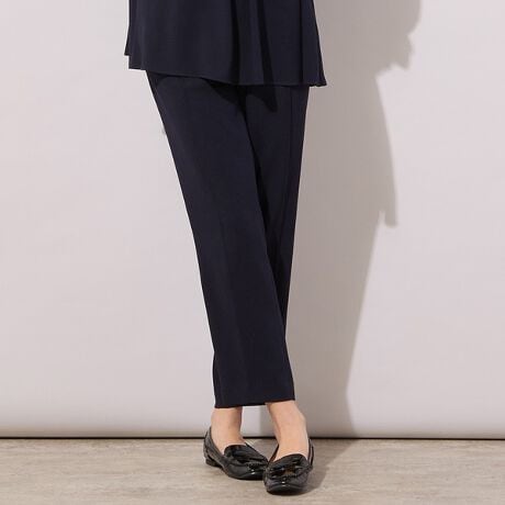 裾に向かって細くなるテーパードシルエットで、フロントはピンタック、バックはセンタープレスで、スッと脚を長くきれいに見せてくれます。