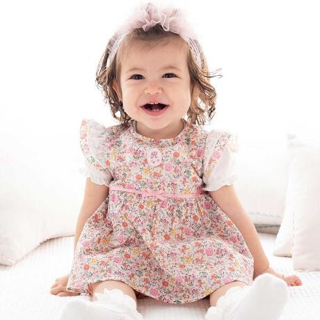 リバティプリントの花柄が華やかな女の子用フリルチュニックです。