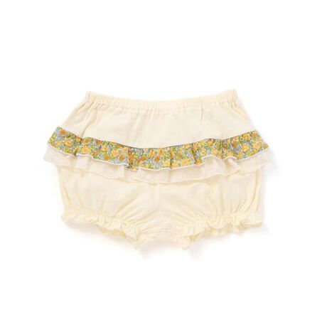 選べる3色!繊細なリバティプリントのフリルが愛らしい女の子用ブルマパンツ。