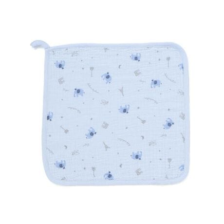柔らかなガーゼ素材に愛らしい動物たちを散りばめた、ループ付きの男女兼用ハンドタオルです。