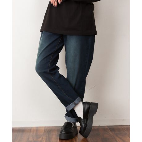 aity アイティ ウエストがオールゴム仕様のシンプルテーパードデニムパンツ。