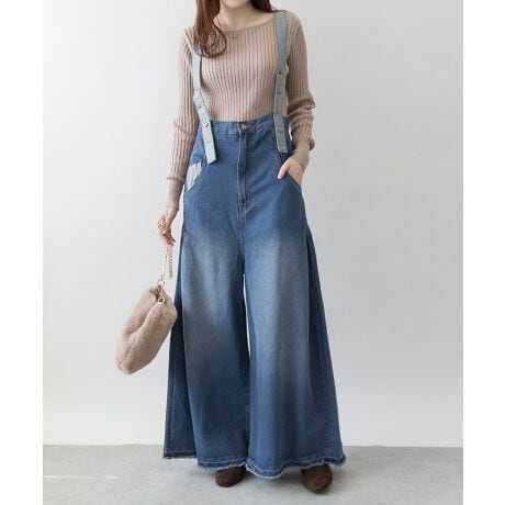 サスペンダーとポケットを裏地使いにし、デザインポイントに。