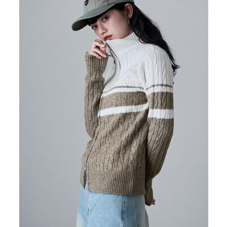 体に程よくフィットするシルエットに立体的なケーブル編みを施すことで、