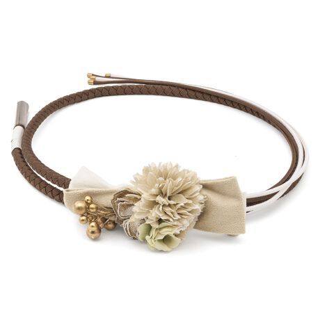 しっかりと編まれた太めの四つ組で、華やかな花飾りが豪華な帯締めです。