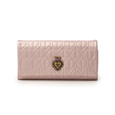 ハートのキルティングと繊細なブローチが印象的な、フェミニンでどこかクラシックなムードを纏った「ドリーミー」シリーズ。甘くなりすぎないハートモチーフに、バタフライを組み合わせたANNA SUIらしい世界観が、大人の可愛らしさと上品さを演出します。軽やかで柔らかなレザーを使用し、手に馴染む心地よい質感に仕上げ、日常使いでもストレスのない使い心地を実現。箔加工を施した革は、光沢を抑えた上品な表情と繊細なカラーリングが魅力で、長く使うほどに味わいが増します。薄マチの長財布や、収納力のあるかぶせ長財布、定番の口金二つ折り財布、マルチケースやパスケースまでラインナップが充実しており、ライフスタイルや用途に合わせて選べるのもポイント。デイリー使いはもちろん、ギフトや記念日の贈り物にも最適な、ANNA SUIならではの華やかさと実用性を兼ね備えたシリーズです。【メーカーサイズ寸法(実寸)】サイズ:H:9.5/W:19.5/D:3.5/重さ:160g/外装背面フリーポケット:1/札入れ:1/小銭入れ:1/カードポケット:16/フリーポケット:3