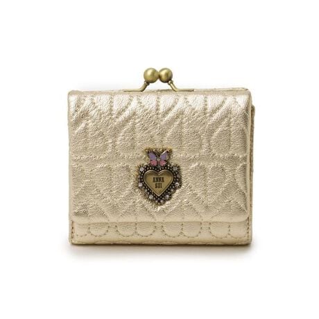 ハートのキルティングと繊細なブローチが印象的な、フェミニンでどこかクラシックなムードを纏った「ドリーミー」シリーズ。甘くなりすぎないハートモチーフに、バタフライを組み合わせたANNA SUIらしい世界観が、大人の可愛らしさと上品さを演出します。軽やかで柔らかなレザーを使用し、手に馴染む心地よい質感に仕上げ、日常使いでもストレスのない使い心地を実現。箔加工を施した革は、光沢を抑えた上品な表情と繊細なカラーリングが魅力で、長く使うほどに味わいが増します。薄マチの長財布や、収納力のあるかぶせ長財布、定番の口金二つ折り財布、マルチケースやパスケースまでラインナップが充実しており、ライフスタイルや用途に合わせて選べるのもポイント。デイリー使いはもちろん、ギフトや記念日の贈り物にも最適な、ANNA SUIならではの華やかさと実用性を兼ね備えたシリーズです。【メーカーサイズ寸法(実寸)】サイズ:H:10/W:11/D:4/重さ:170g/札入れ:2/小銭入れ:1/カードポケット:9/フリーポケット:1