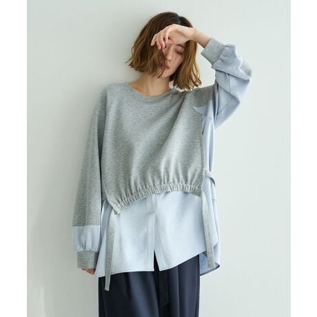 シャツレイヤードデザインプルオーバー